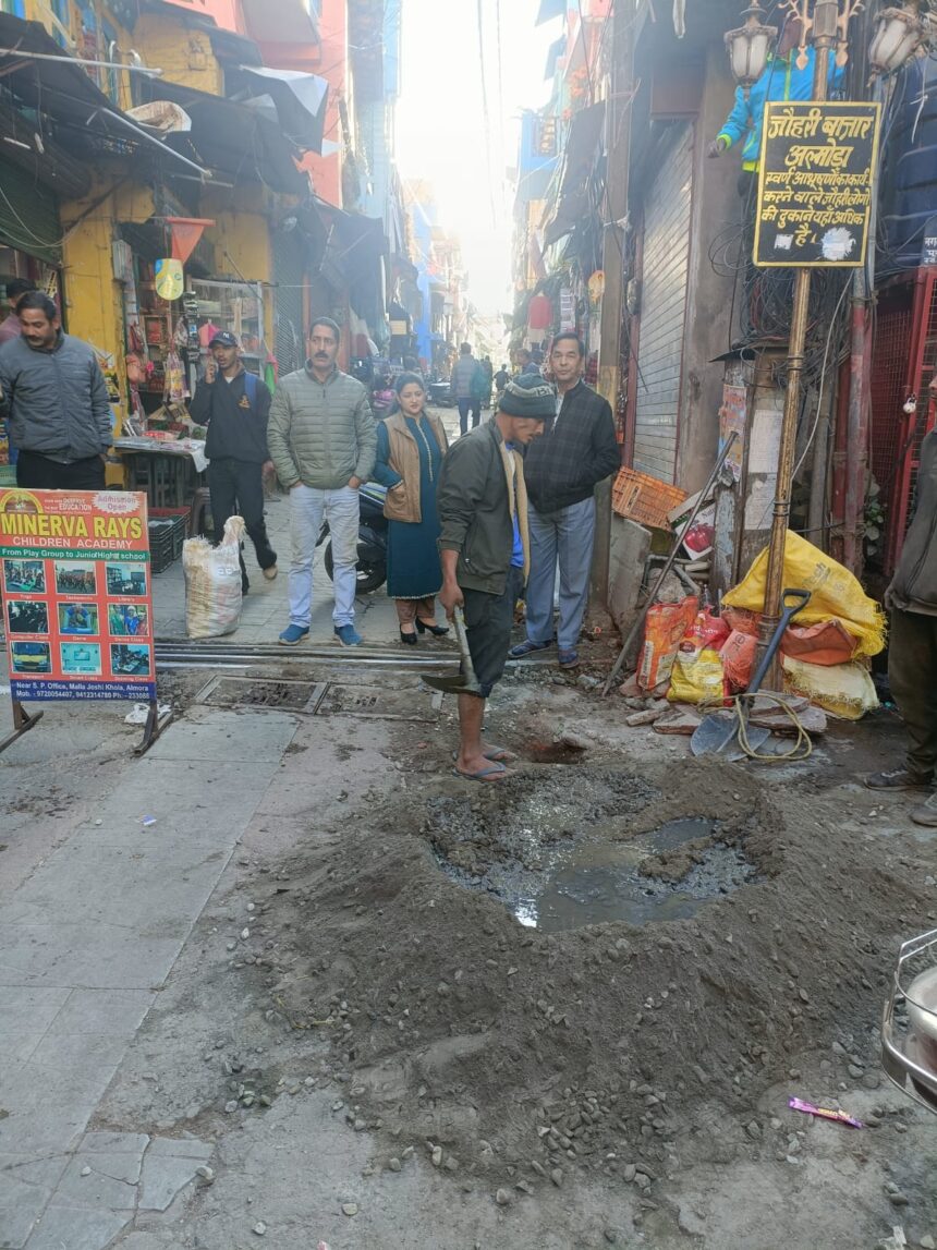 Almora. Residents of Selakhola Ward were facing inconvenience due to an open drinking water pipeline near the Hookah Club area for quite some time. The exposed pipeline not only disrupted regular water supply but also posed a risk of accidents for pedestrians passing through the route. Taking quick cognizance of the issue after receiving complaints from the public, Ward Councilor Vandana Verma acted promptly and coordinated with Junior Engineer Mr. Bisht of the Jal Nigam to resolve the matter without delay.