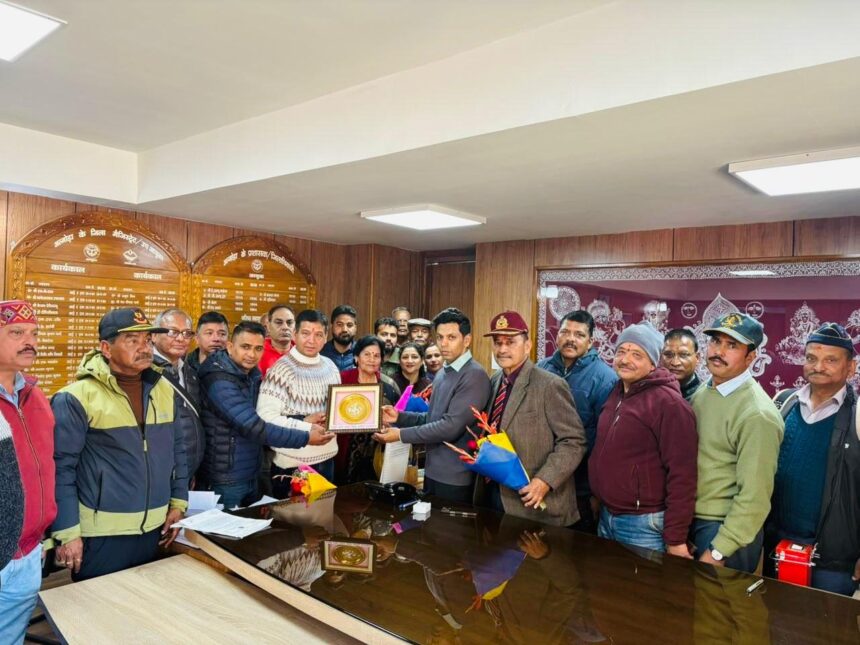 A joint delegation comprising office bearers of Devbhoomi Udyog Vyapar Mandal, Akhil Bharatiya Purva Sainik Seva Parishad, Dharma Jagran Samnvay Almora, Ex-Para Military Force Personnel Welfare Association, and various social workers of the city met District Magistrate Anshul Singh under the leadership of Nagar President Sanjay Sah Rikhku. The delegation welcomed the DM with a bouquet and apprised her of several key issues concerning the city.